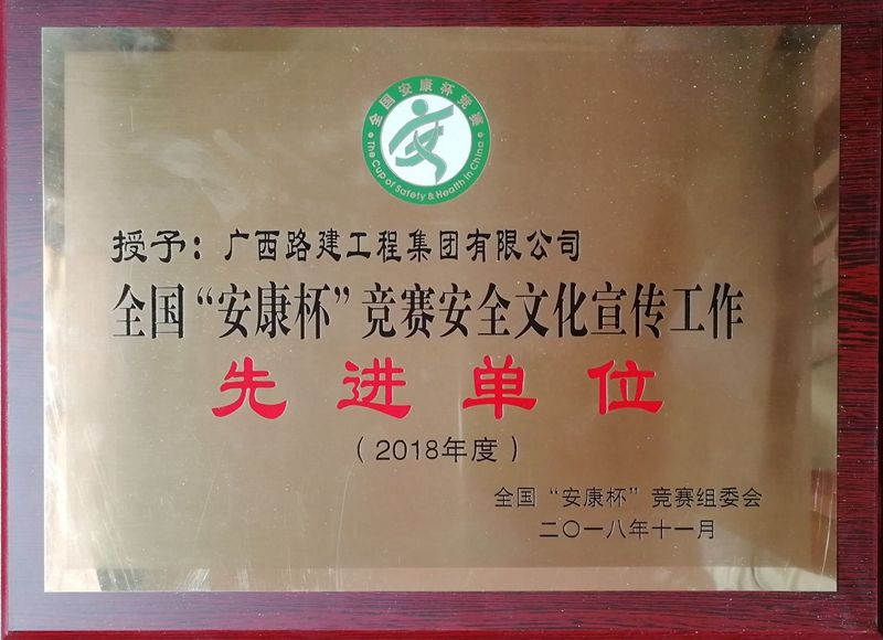 - 2018年獲全國“安康杯”競賽安全文化宣傳工作先進單位