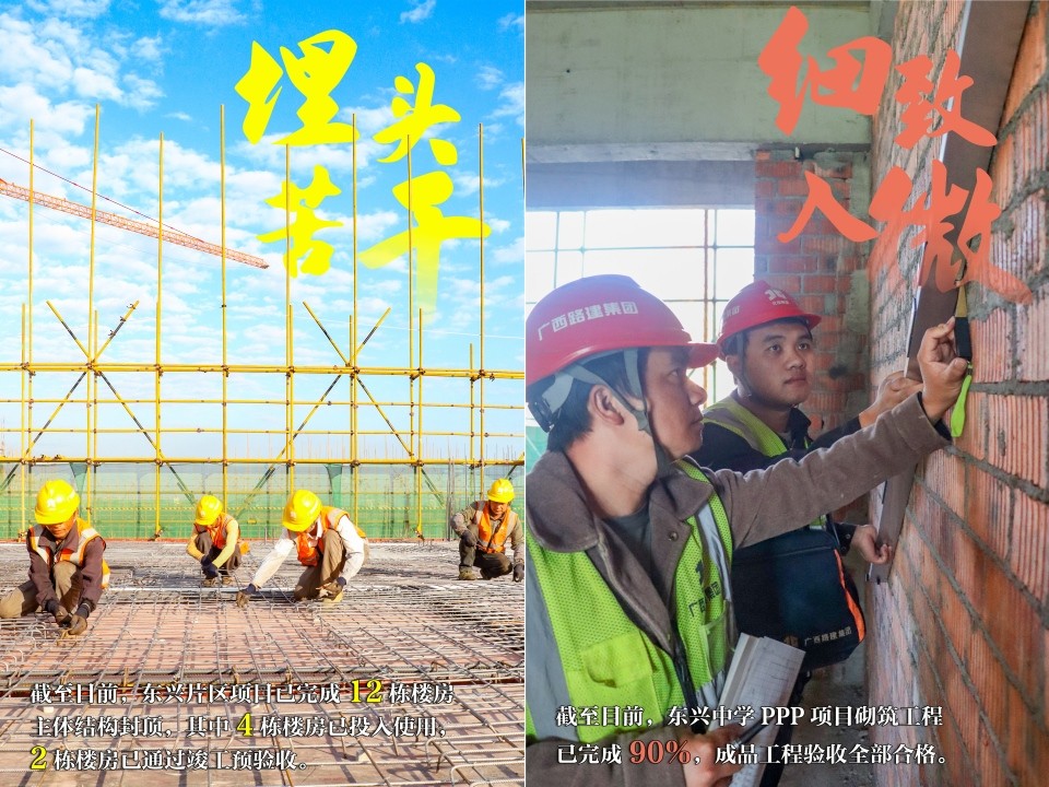 一年之末,四季之終。進(jìn)入12月,建筑公司東興片區(qū)各項(xiàng)目建設(shè)發(fā)動全年“總攻勢”,開啟歲末“總決戰(zhàn)”。全體參建者在各自的崗位上,用汗水與堅(jiān)守,以飽滿的狀態(tài)、十足的干勁,快馬加鞭,全力沖刺2024年最后“一公里”。一起看看施工現(xiàn)場上奮斗的足跡吧。