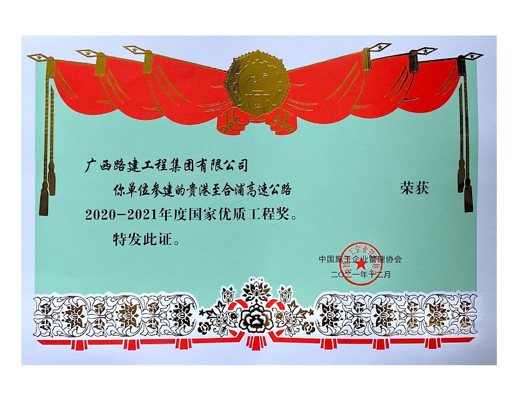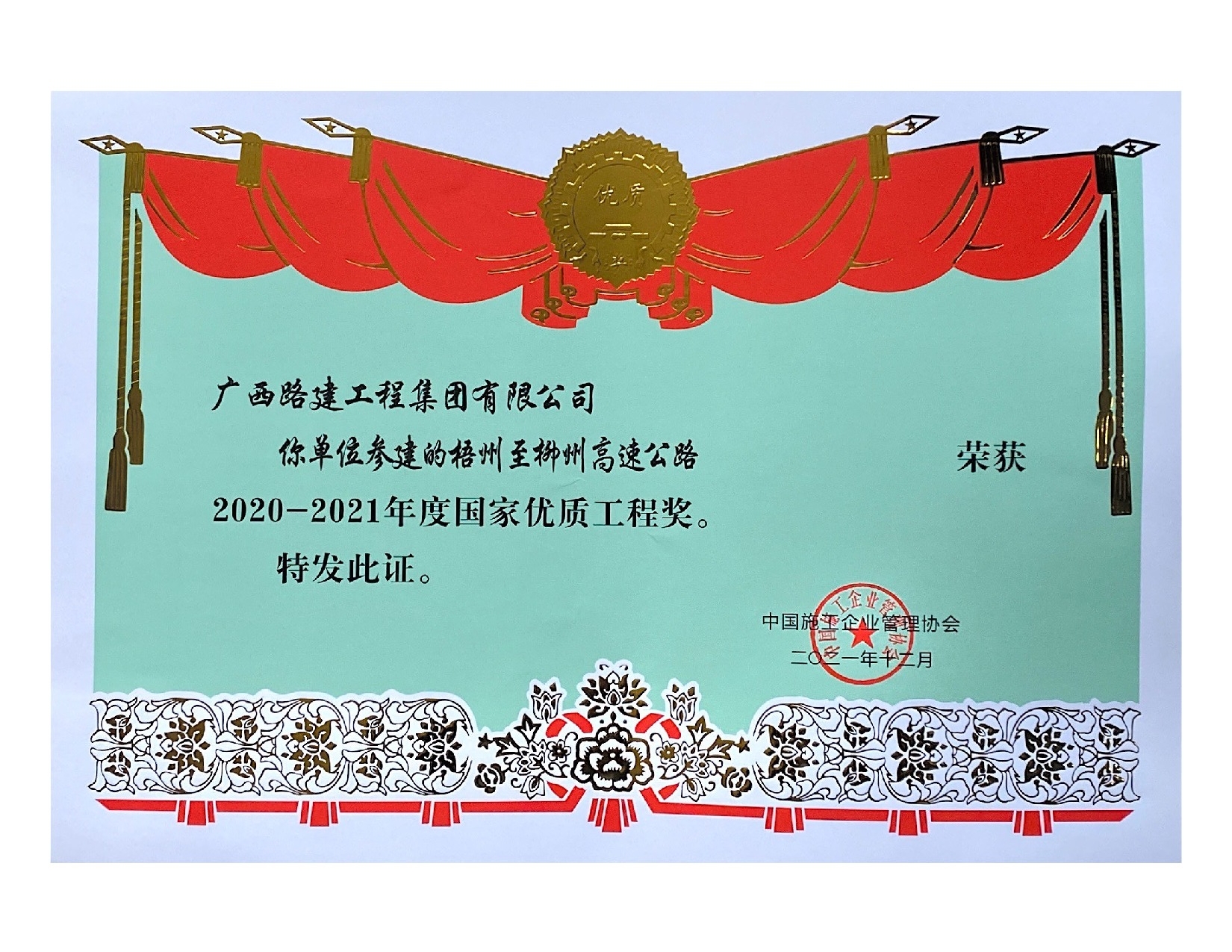2021年獲國(guó)家優(yōu)質(zhì)工程獎(jiǎng)(梧州至...
